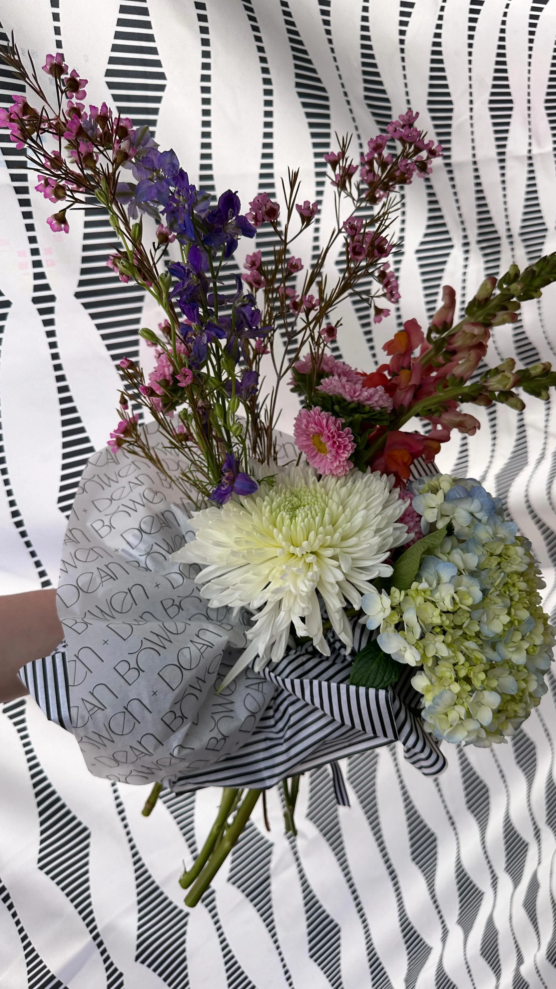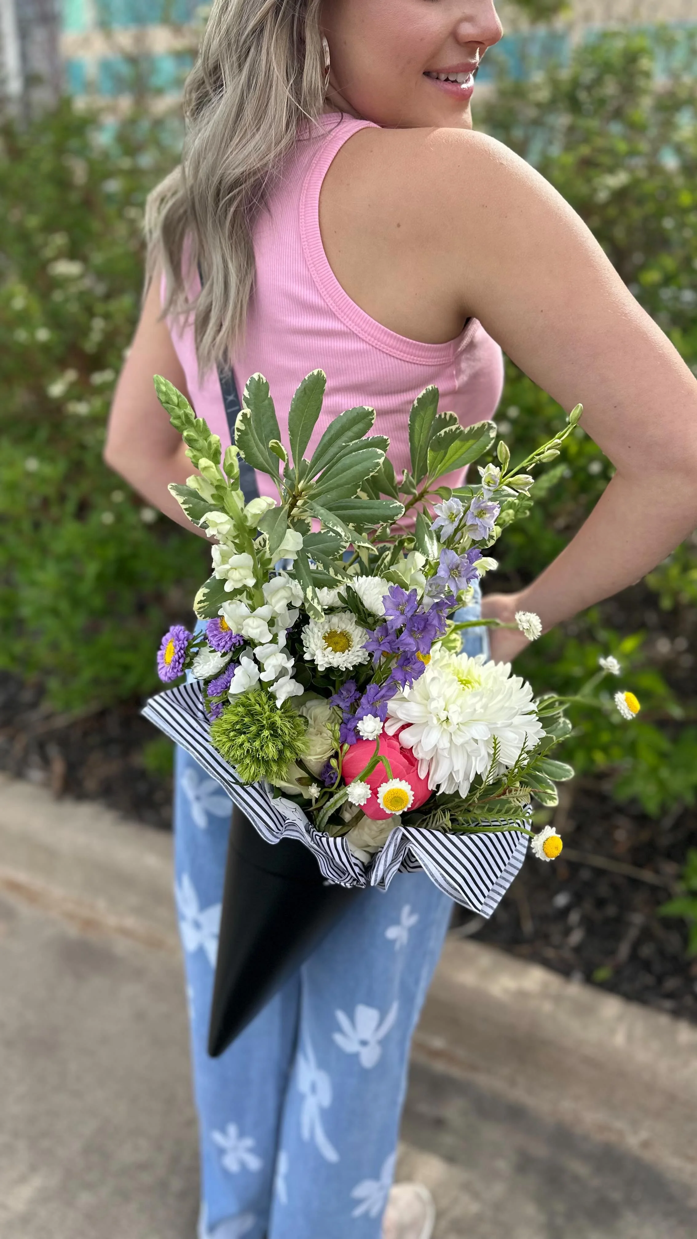 proudly wrapping bouqs at the cherry creek farmers market Saturdays